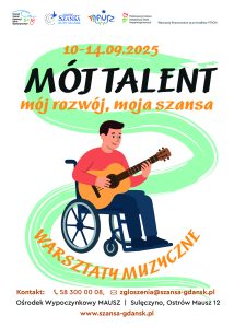 🌟 Zaproszenie na warsztaty muzyczne 🌟 Stowarzyszenie Rehabilitacyjno-Sportowe „Szansa – Start Gdańsk”ul. Puszkina 8/1A, 80-233 Gdańsk 📅 10 – 14 września 2025 r.📍 Ośrodek Szkoleniowo
